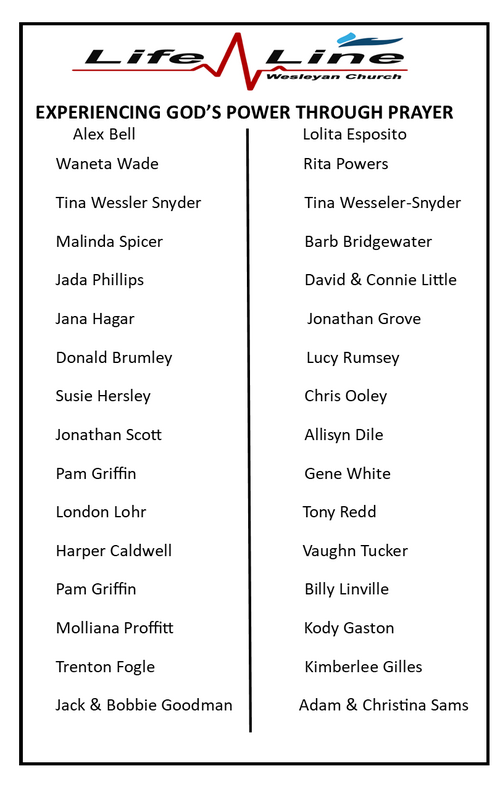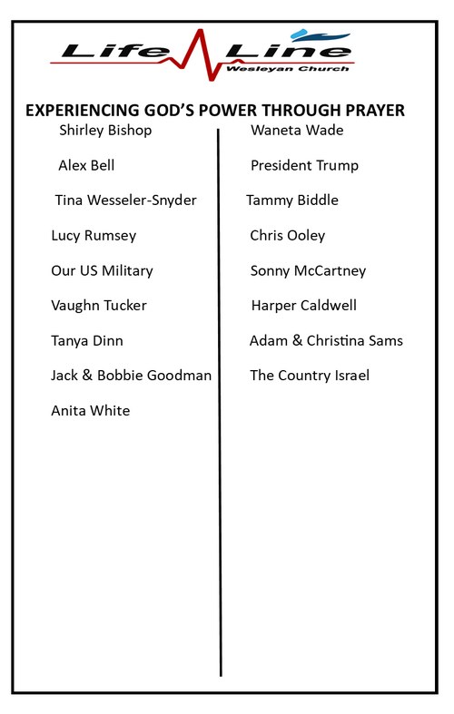 LifeLine Wesleyan Church is a place where people can meet Jesus. We believe in the power of prayer! Here is a list of individuals needing prayer.