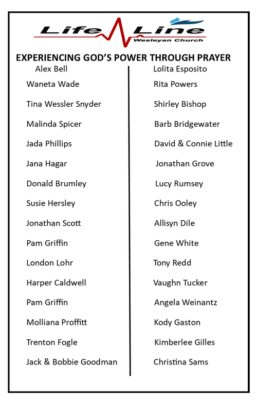 LifeLine Wesleyan Church is a place where people can meet Jesus. We believe in the power of prayer! Here is a list of individuals needing prayer.